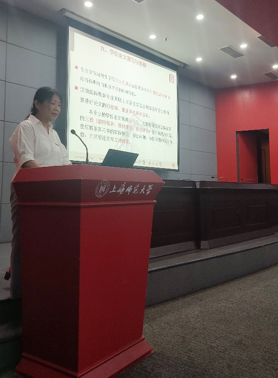 接下来由学院的两位研究生专业负责人李文浩老师和吴颖老师分别介绍了学硕和专硕研究生培养中的有关问题,两位老师从培养目标、课程设置、考核方式、论文答辩等方面进行了详尽介绍。最后,副院长李文浩老师介绍了研究生学术规范中的有关问题,并提醒在座所有研究生要维护学术道德、规范学术行为、严明学术纪律。