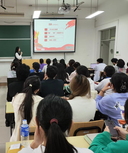 2021级语言学党支部书记范玉媛为同学们讲授第二堂党课“向阳生长,与光同行”。她满怀激情地向同学们分享了自己的入党经历与思想体悟。首先,她谈及自己抗美援朝的爷爷、为乡亲们做实事的姨父,以及自己成长过程中对党的性质宗旨认识的深化,让同学们对中国共产党有了更深刻的认识。其次,她分享了自己对于“青春”、“青年”的理解,鼓励同学们在短暂易逝的青春年华里努力奋斗,度过无悔的一生,做一个有价值的人。然后,她以袁隆平爷爷和林俊德院士为例,告诉同学们理想与梦想的珍贵,鼓励青年人勇敢追梦,不负韶华。最后,范玉媛同志激励同学们永远向着党,紧紧依靠党,坚定理想信念,成为耀眼的光芒,照亮青春之路,在实现中华民族伟大复兴的正确道路上奋力前行,不负时代,不负人民。范玉媛的分享十分真挚,让同学们受益匪浅。