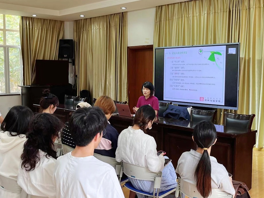 学院党委副书记、副院长金钧老师为同学们讲授第一堂党课“以实际行动争取入党”。金钧老师分享了自己高中时拜访一位老党员同志时的经历,谈到了在与老党员同志交流过程中的领悟——入党并不简单,对党的承诺要用一生去践行。她殷切嘱咐全体学生明确入党动机,真正做到全心全意为人民服务,并且希望各位同学能对标党员标准,落实到实际行动中。除此之外,金老师还鼓励大家“以学为本”“珍惜时间”“珍惜机遇”“不断提高综合素养”。同学们认真聆听金老师的教诲,认真记录,思考个人与党组织的关系,收获颇多。