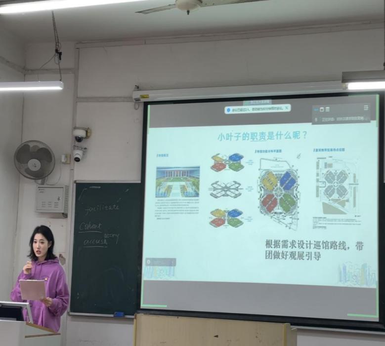 另一位进博会志愿者唐益的分享,从国家会展中心的结构导入,介绍了进博会各个展区的设置及展位的分布情况。她还结合自身带领导团参观展览的经历,声情并茂地讲述了志愿服务中所遇到的趣事儿,提到了许多志愿者前辈和优秀的工作人员。其中有一位负责协调场馆内所有车辆安排的老师,耐心热情、待人和善,除了出色完成自己的本职工作外,在繁忙的工作期间依然保持自己最大的热情和耐心来应对各项突发事宜,展现了极高的专业素养、强大的心理素质和优秀的志愿者精神。