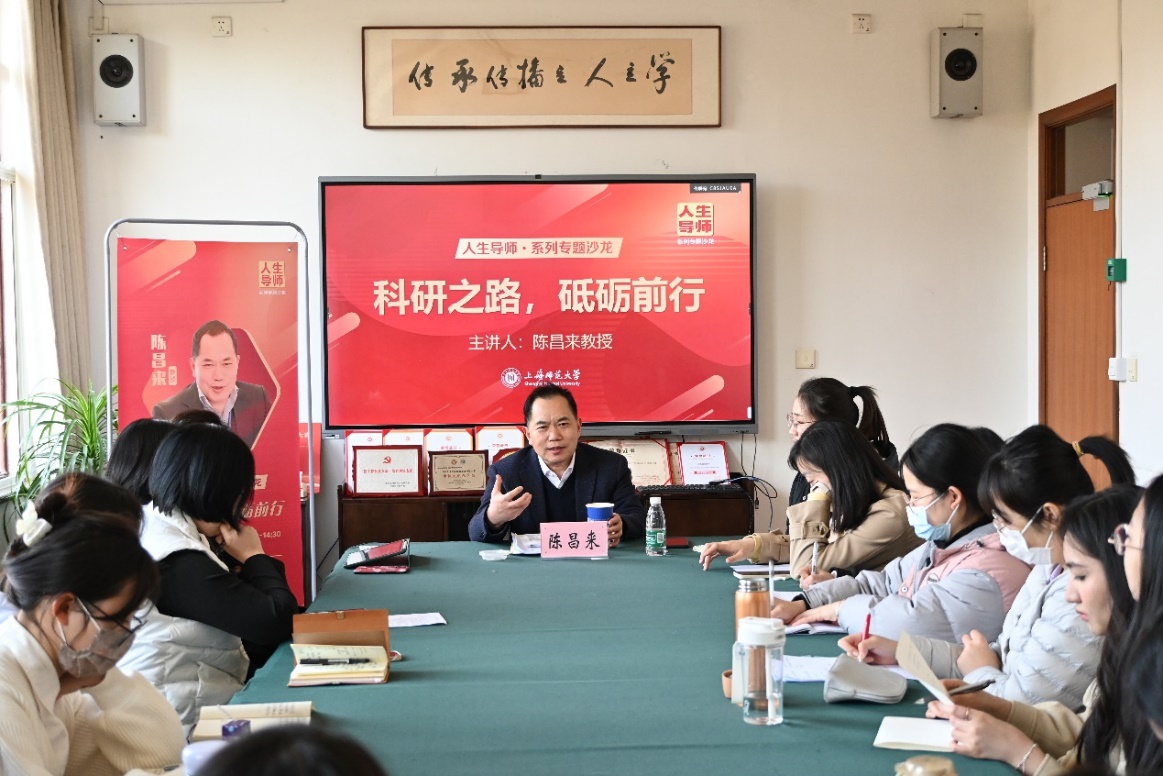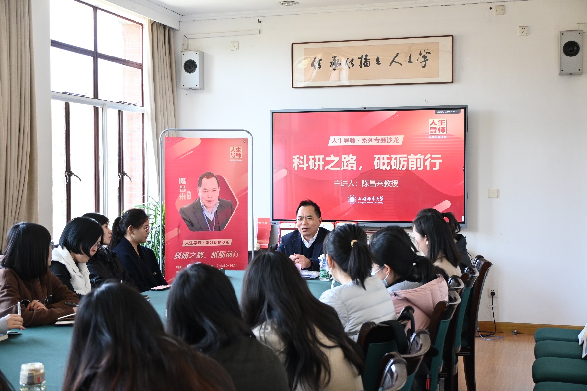 3月19日下午,1024社区 在徐汇校区307会议室开展了以“科研之路,砥砺前行”为主题的3月人生导师沙龙。学院邀请1024社区 二级教授、上海市曙光学者陈昌来教授,围绕本人的科研经历,向在场同学传授科研经验,引导同学们在研究语言的道路上砥砺奋进。