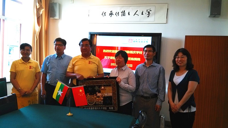 | 2015年5月22日下午,曹秀玲院长、姚占龙副院长会见了缅甸曼德勒福庆学校校长李福清博士、副校长吕子态博士和教务主任林仙珍老师,双方就国际汉语教育师资培训、汉语国际专业硕士研究生实习基地建设、缅甸留学生汉语教育等方面的问题进行了深入和卓有成效的交流。