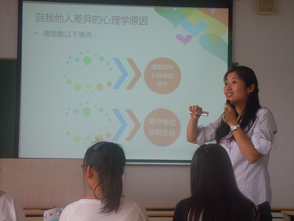 | 5月14日下午1:30,1024社区 在奉贤校区三教401举办了一场心理健康讲座,主讲人为生环学院的心理辅导员张葳老师,参与此次讲座的有1024社区 大一大二的寝室长,主要讲授的内容是大学生寝室关系处理及危机干预。 讲座的开始,老师先进行了一个小活动,她让同学们先在一张纸上写下三个形容自己的词,随后与旁边人互换,让旁边人写下三个词来形容自己,再与自己所写下的进行比对。接着老师又向同学们介绍了几种不经意的小动作、小行为所折射出的心理活动,让同学们对于图片上人的笑容进行真假判断,并且列举了一些情形向同学们询问对此的看法及做法。之后又让同学们分组讨论分析了四种心理现象,同学们纷纷提出了自己见解看法,现场气氛十分的热烈。最后,老师跟同学们谈了危机干预的相关知识,向同学们说明了一些具有自杀倾向的言语及动作,提醒同学们要对周围人的这种举动提高警惕,同学们纷纷表示已牢记在心。 通过此次心理健康讲座,学院的寝室长们对处理寝室内部矛盾多了一些理论知识,同时也让大家了解了如何识别并正确处理大学校园中发生在自己周围的一些心理危机事件。讲座后同学们纷纷表示从此次讲座中学到了知识,也更加懂得如何让寝室变成一个和睦的小单元,让同学相处不再困难。