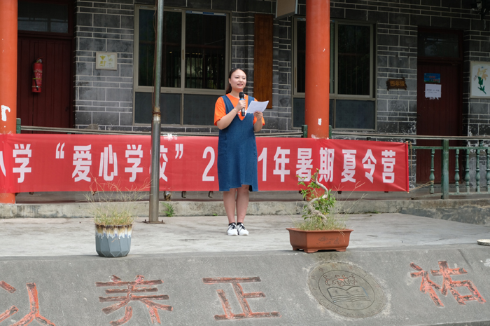 本次开班典礼首先由爱心学校校长徐澍琳介绍活动概况,包括本期夏令营组建过程、爱心教育资源、爱心学校组成体系等内容。徐校长提到,希望我们志愿者团队能够努力为孩子们传授知识,为他们的梦想助力,能够在实践中受教育、长才干、做贡献。作为承办学校的龙潭小学,龙潭校方一直与上师大的师生有着密切的联系和合作,申学齐老师表达了对实践团队的衷心感谢,同时严肃强调了学生的在校期间的安全问题及习惯要求。张汶静老师也为小朋友们送上一份寄语,期待希望的种子能够在他们心中生根发芽,带领他们走向更广阔、更精彩的世界,发现更多的美丽。