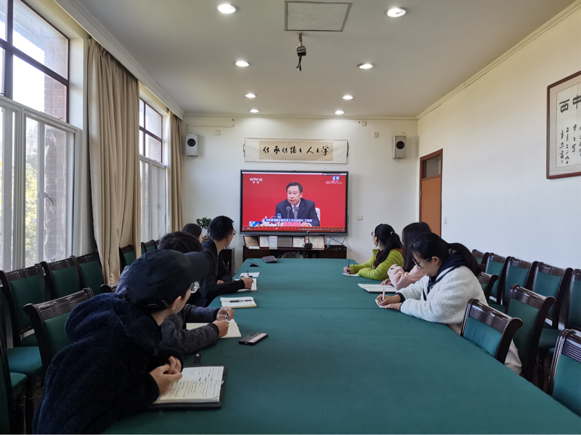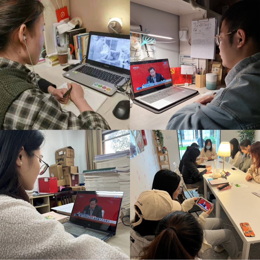 各党支部在认真观看学习后,积极交流心得。本硕党支部葛涛结合大会提到的“两个确立”,谈到:“一个党没有核心就会散,我们党在新时代,尤其是面对后疫情时代这样一个百年未有之大变局,正是因为我们始终坚定围绕在习近平总书记周围,沿着正确的方向前进,才有了现在的发展成就。”2020级语言学党支部的谢远芳同志从自身经历出发,谈到:“作为入党积极分子,无论是在抗疫一线还是科研一线,无论是在日新月异的当下还是雄伟光明的未来,都要立足自己平庸的岗位、立足人民的期盼,在为民奉献中校准人生的航线,在实践淬炼中提升自己的本领。”2021级语言学党支部徐宇航通过剖析中国共产党发挥统领全局的作用,带领人民在政治、经济、文化、生态等各个方面取得的巨大进步,表达了对中华民族伟大复兴的信心:“在党的领导下,我们必将向着更光明美好的未来前进,我们未来可期。”