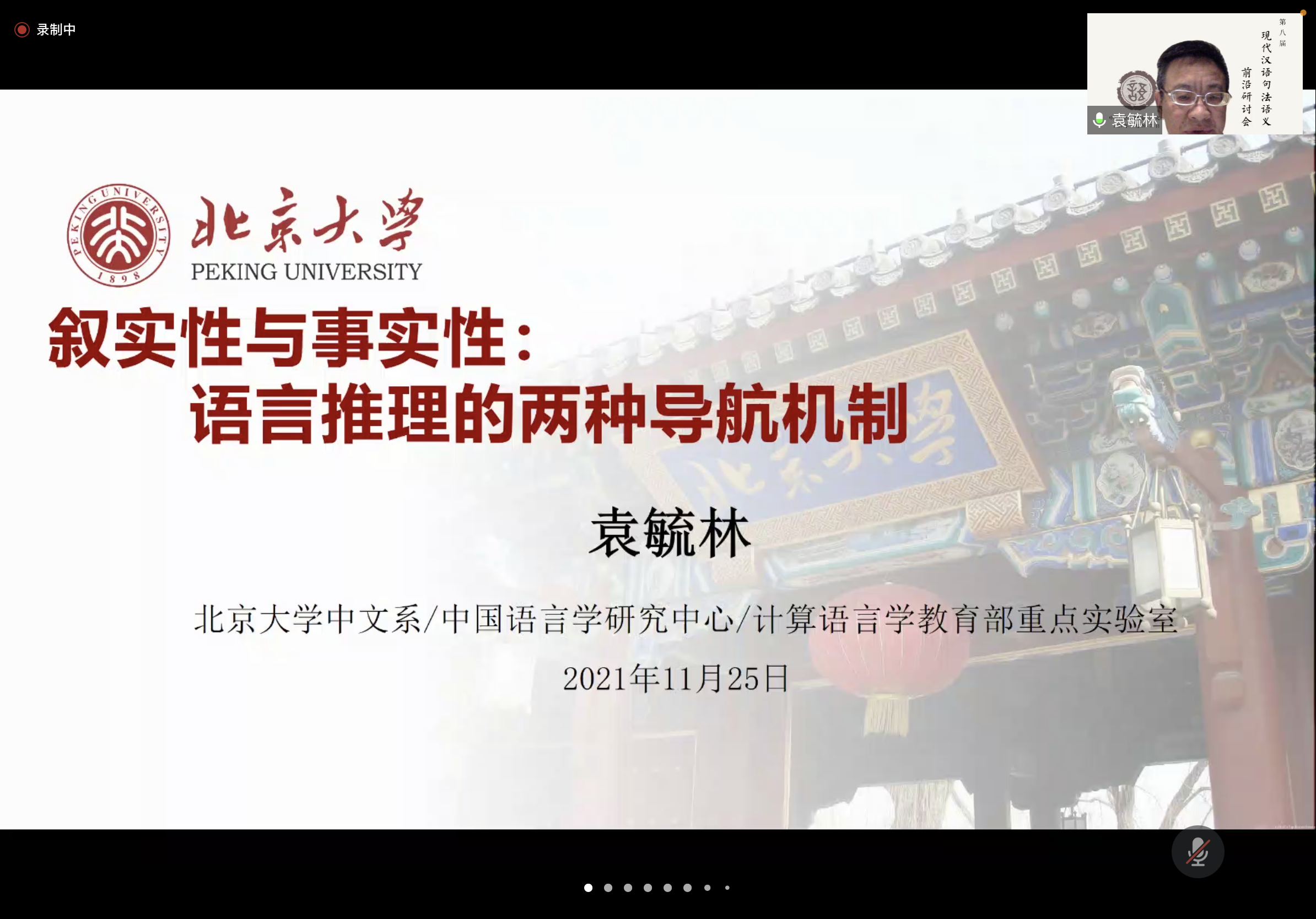 11月25日晚,北京大学中文系博士生导师袁毓林教授应邀为1024社区 师生带来了一场题为《叙实性与事实性:语言推理的两种导航机制》的讲座。为配合疫情防控要求,本次讲座以线上形式进行,讲座由研究生院常务副院长、博士生导师陈昌来教授主持。