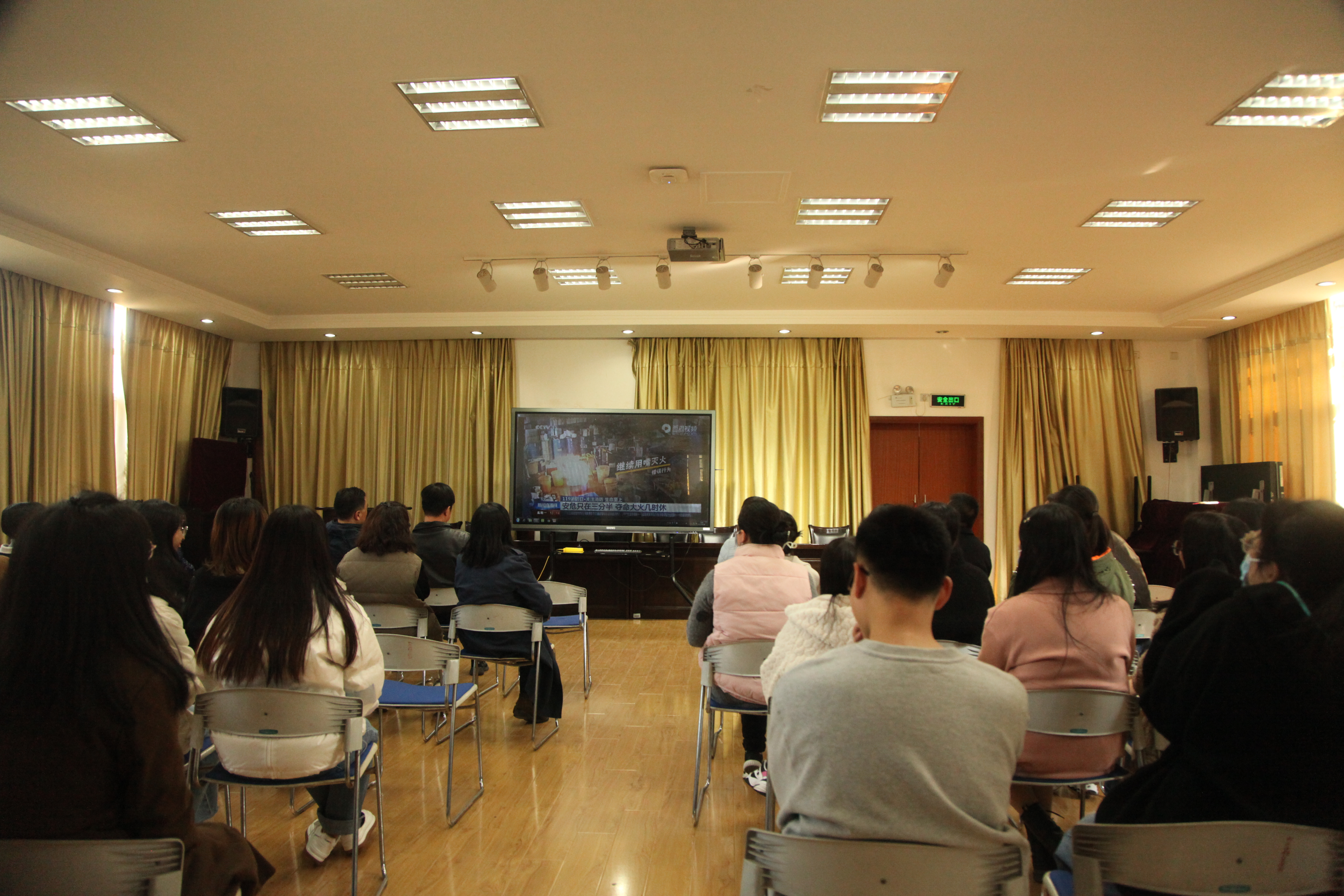 11月24日下午在学院303多功能厅举办消防安全知识讲座。讲座由学校保卫处安全科科长陆金权主讲,学院行政工作负责人刘春光主持,学院师生共同参加。陆老师为大家播放了火灾事故的视频,以案说法,给师生们讲述了生活中存在的各种火灾安全隐患以及遇到危险情境时的应对措施和自护自救方法。陆老师告诫大家要有安全意识,切忌麻痹大意。为提高大家的火灾防范意识,他强调要注意四点要求:一、遵守学校的规章制度,严禁使用违章电器;二、掌握基本应急的处置方法,特别是灭火器的使用;三、熟悉周边环境,发生紧急情况时方便及时疏散;四、学会正确报火警,准确描述火灾发生位置并保持电话畅通。