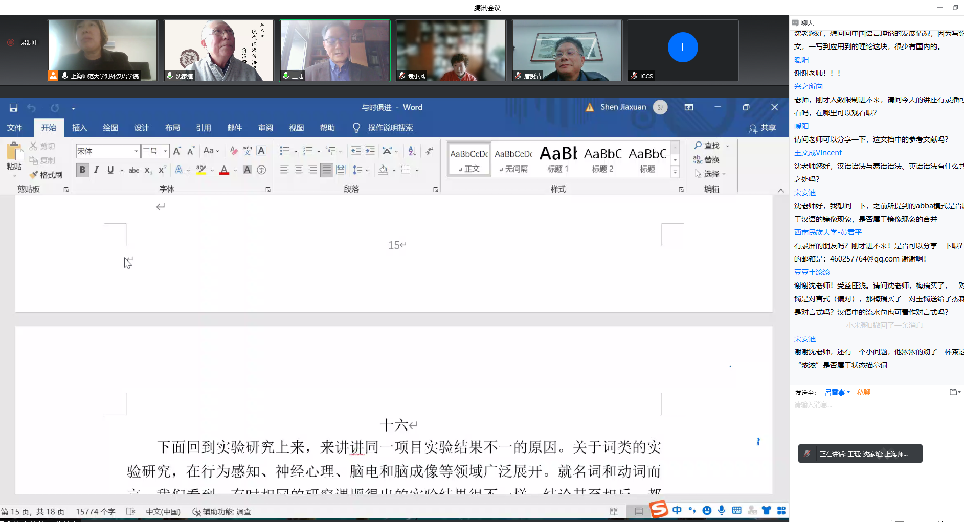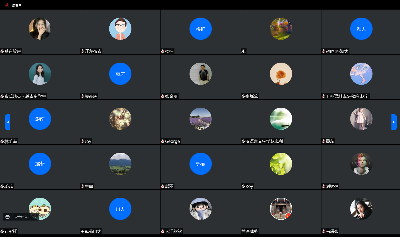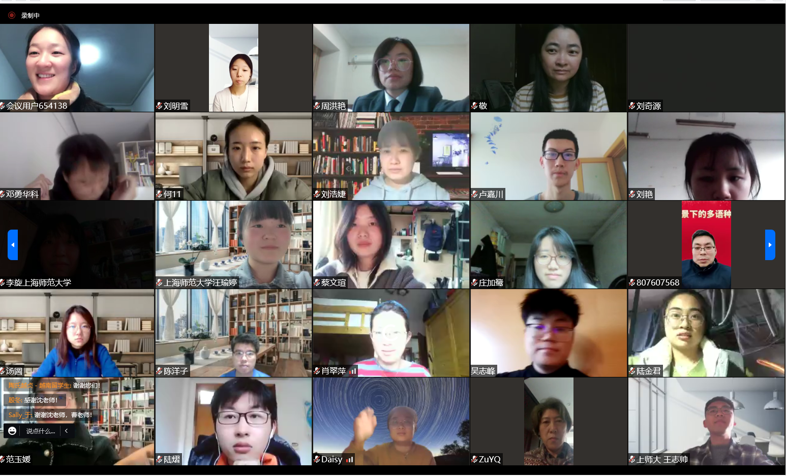 交流讨论环节,沈先生与线上师生积极互动。针对听讲师生聊天窗留言和语音提问,沈先生作了耐心细致的解答。听讲师生表示受益匪浅,纷纷留言感谢沈先生疫情之下为广大语言学师生分享的真知灼见,感谢1024社区 对外汉语搭建的学术交流平台。