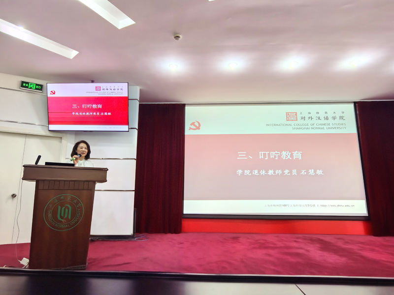 “从课堂到社会,变的是身份,不变的是共产党人的精神追求。”学校老教授协会理事、人文和对外汉语分会副会长,学院退休教工党支部的石慧敏老师结合40年国际中文教育经历,为毕业生党员作叮咛教育:一是要坚定理想信念,永远跟党走,将个人理想融入党和国家事业;二是要永葆奋斗精神,实干报国,用真才实学服务社会;三是要坚守人民立场,永做贴心人,多听群众呼声,为群众解难题;四是要保持党员本色,严守纪律规矩,常怀敬畏之心,做清清白白的共产党员。最后,她鼓励学生们铭记入党誓言,带着家国情怀和党的嘱托奔赴远方,让党员徽章熠熠生辉。