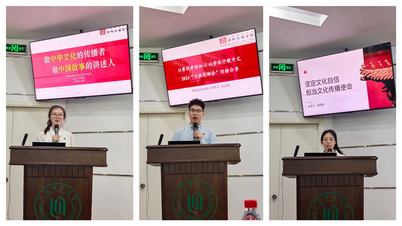 活动在庄严的国歌声中拉开序幕。三场“党建+专业”特色微党课引发思想共鸣:汉语国际教育本科生第二党支部朱姝念以《做中华文化的传播者 做中国故事的讲述人》为题,结合《哪吒之魔童闹海》海外传播效应及校友运用社交媒体平台进行文化推广案例,提出“将人类命运共同体理念转化为可触达的‘中国故事’”。2023级汉硕党支部书记张珈烽分享了2024“汉教英雄会”参赛经历,分享团队运用AI技术构建智慧课堂的实践,创新数智化教学模式,以“标准为基、创新为翼”,为国际中文教育注入科技动能。汉语国际教育本科生第一党支部余欣妍以德国留学生“以上海为家”的鲜活故事切入,解码上海“兼容并蓄”城市精神,号召党员以“解码者-翻译官-讲述人”三重身份架设文明对话桥梁,在跨文化实践中彰显青年担当。三位主讲人以小见大,将国际中文教育专业特色与党员担当深度融合,展现外汉学子“向世界传递中国声音”的赤诚初心。