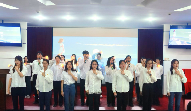 “党旗所指,就是青春所向!”活动尾声,党员代表以手势舞联动合唱《年少的你啊》,指尖律动与歌声交织,诠释“使命传承”的深意。
