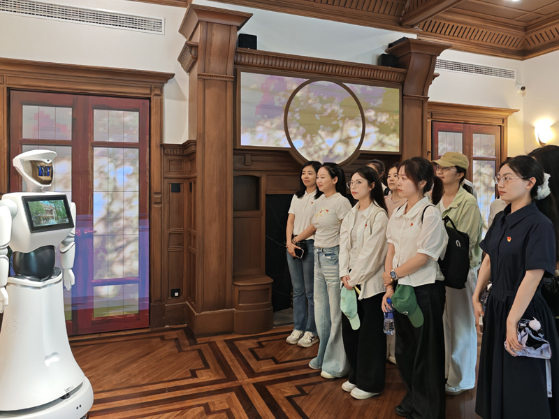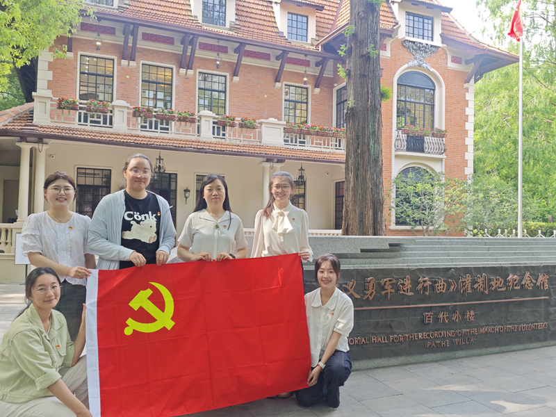 2025年5月14日下午,1024社区 汉语国际教育本科生第一、二党支部党员走进位于上海徐家汇公园的《义勇军进行曲》灌制地——百代小楼,在红色文化地标中重温国歌故事,并成为百代小楼讲解机器人首批“体验官”,开启了一场别开生面的主题党日活动。