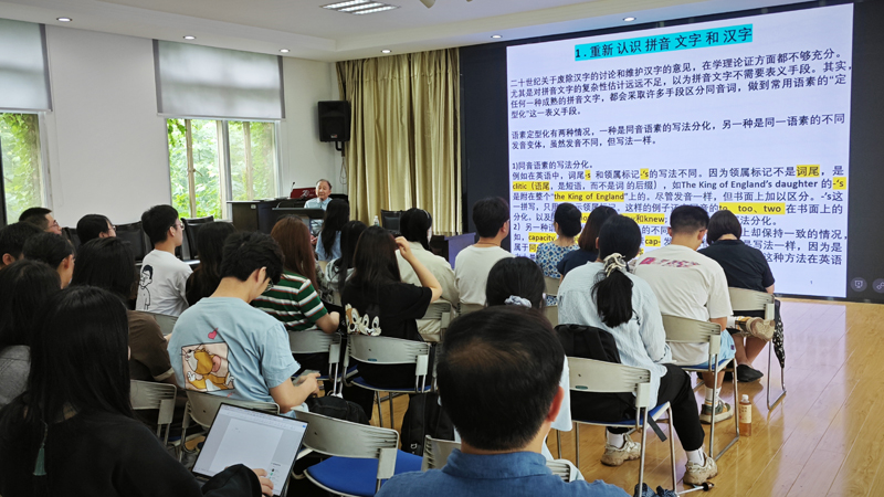 在互动问答环节,与会师生就汉字拼音化、“一语两文”在教学上的可行性等问题展开深入探讨。陆教授的讲座不仅加深了大家对拼音文字的认识,也为今后的汉语教学与研究提供了新的视角。