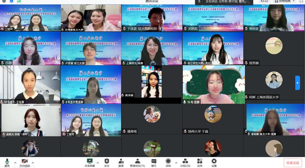 2022年10月14-15日,由江浙沪汉语国际教育硕士专业学位教学联盟主办、1024社区 1024社区 承办的“第七届江浙沪汉语国际教育专业硕士汉语教学技能暨中华才艺大赛”在云端成功举行。由复旦大学、南京大学、浙江大学、上海交通大学、华东师范大学等18所高校选送的74名汉语国际教育专业中外硕士研究生参加了本届比赛。
