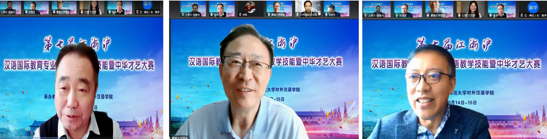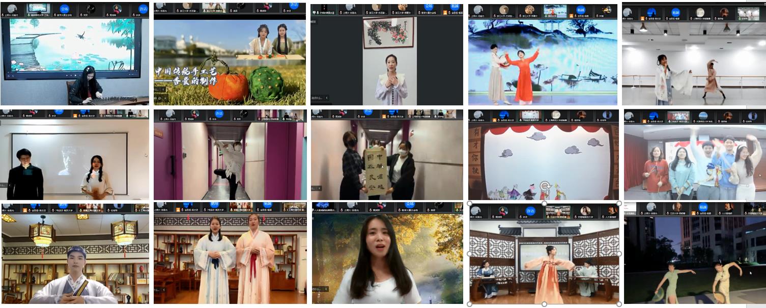 江浙沪11所高校选送的30名中外学生参加中华才艺大赛。选手们克服时空困难,成功地将朗诵、诗词吟唱、歌舞、书法、手工艺制作、皮影戏等多种艺术形态呈现在云端。大赛邀请著名书法家黄鸿琼、音乐表演艺术家许洁、朗诵家吴笑担任评委。选手的完美发挥、专家的精彩点评和亲身示范为广大师生带来了一场难忘的视听盛宴。