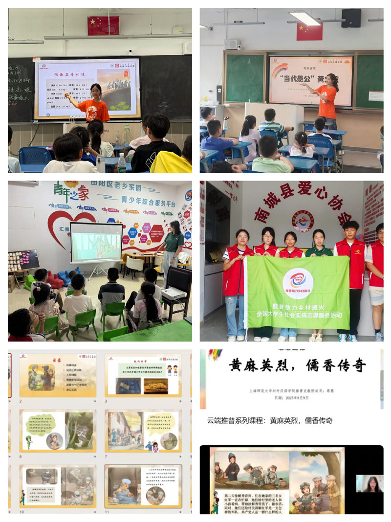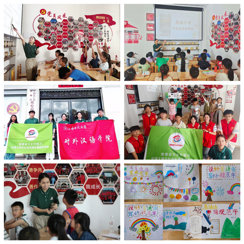 “推普”的点点星火不仅在江西、云南、贵州等地发光发热,同时也在广西、上海等联动实践地熠熠生辉。在广西,团队依托共青团“伙伴计划”,于青年之家等场所组织开展“推普+语言调研”“推普+知识课堂”“推普+顾绣文化”等系列活动,让国家通用语言文字成为描绘美丽田阳建设新图景的生动注脚。在上海,团队为徐汇区爱心暑托班量身打造、配送与红色文化相结合的推普课程,使国家通用语言文字成为传承革命精神、宣讲习近平新时代中国特色社会主义思想的坚实载体。此外,团队精心制作了系列“云端”推普微课程,以红色故事为核心,涵盖思想道德、政治品德教育等内容,并于“ICCS推普实践”微信公众号专栏发布。