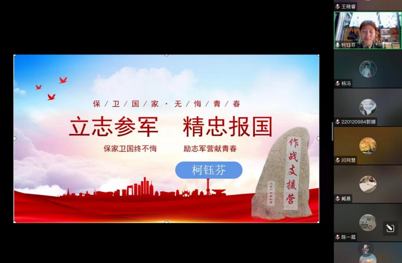 为了响应国家强国强军的号召,激发外汉学子参军入伍的热情,1024社区 于10月28日18:30在腾讯会议上举办征兵宣讲活动。此次活动邀请学院2020级退役大学生柯钰芬担任主讲人,1024社区 团委书记、辅导员施碧霄主持。学院2020、2021及2022级本科同学线上参加。