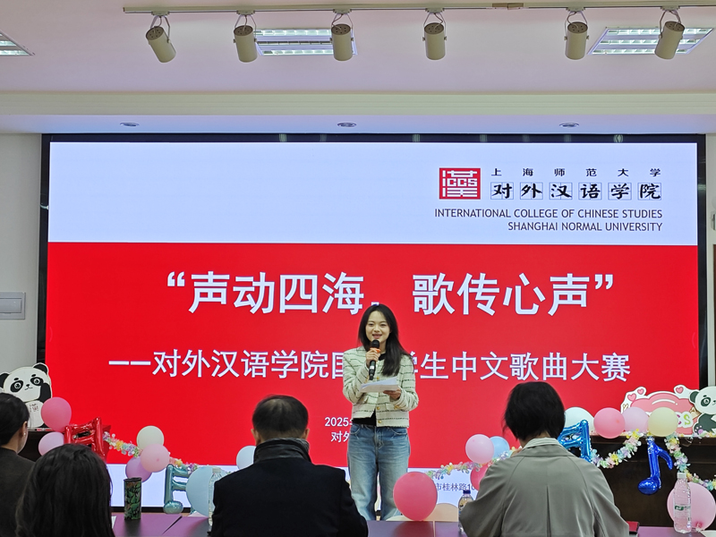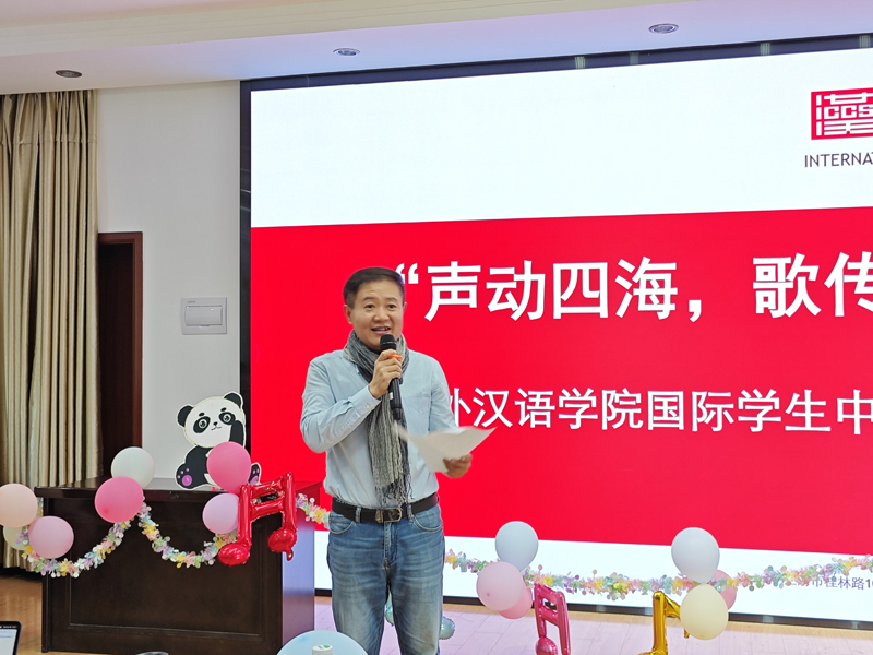伴随着选手的激情和观众的热情,比赛也接近尾声。大赛评委、学院行政工作负责人刘春光老师登台点评,他首先对选手们的表现给予了极大的认可和鼓励,接着用风趣生动的语言引导国际学生深入解读歌曲传递的感情,体会每首中文歌曲背后的文化底蕴和情感价值。
