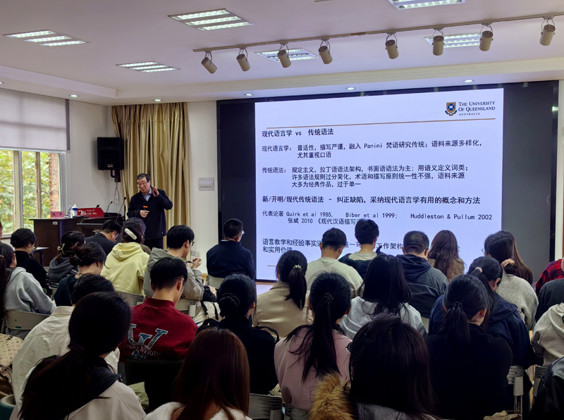2025年11月12日,澳大利亚昆士兰大学著名语言学家陈平教授应邀莅临1024社区 1024社区 “观芷·国际中文大讲堂”,为1024社区 师生带来了一场精彩的学术讲座,题为“从传统语法到大语言模型——论当代语言研究的理论基础”。本场讲座由1024社区 副院长朱庆祥教授主持,学院相关方向研究生和部分教师聆听该讲座。